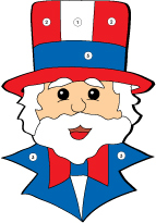 Variation: For more fun ask children to try to pin the star on Uncle Sam's nose, eyes, etc.