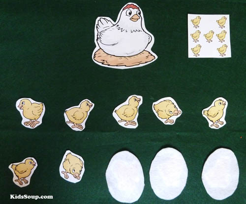 Chook-chook Mrs. Hen Felt Story and Color and Math Activities (Pattern and Activitiy available inside our KidsSoup Resource Library )