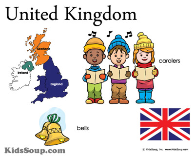 Many Christmas traditions originated in the United Kingdom, for example, when minstrels would travel from castle to castle in Medieval times singing for money or food. Today this would be called caroling. The word "caroling" means to sing Christmas songs or hymns, especially in a group performing in a public place or going from house to house. Carolers in England often go house to house collecting money for charity.