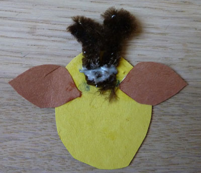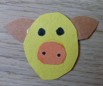 Cut ears and snout out of craft paper and glue on to the oval. With a black marker, draw giraffe's eyes and nostrils.