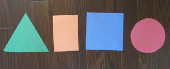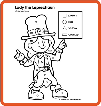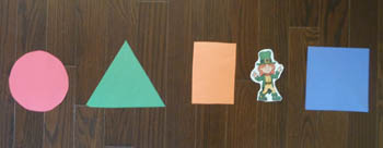 Cut large shapes (circle, rectangle, square, triangle) that are larger than Lady the Leprechaun out of craft paper. Review the different shapes with your children.