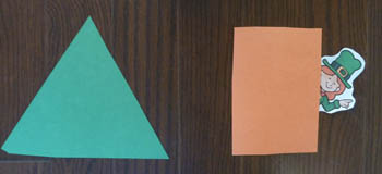 Then, hide Lady the Leprechaun under a shape. Instruct children to open their eyes. Let children take turns calling out the name of a shape and lifting it up. If the Lady the Leprechaun is found let children say, "Happy St. Patrick's Day!"