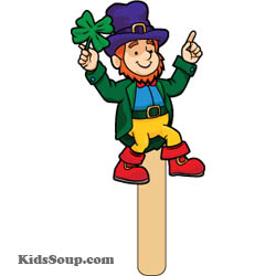 Print printable and let children color the leprechaun. Then, glue on to a craft stick.