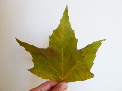 Let children trace around their leaf with a pencil. Next, let them use a Sharpie marker to trace the pencil marks and draw the veins on the leaf. Last, have them color the leaf with water colors to look like the real leaf.
