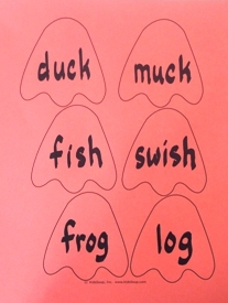Print the Small Duck Footprints and make several copies on orange paper. Write rhyming words pairs inside the footprints, one word per foot. Laminate cards if desired and cut out each one. (See the list below for rhyming pair possiblities.) Before introducing the game, review the word on each card and its meaning in relation to the story.