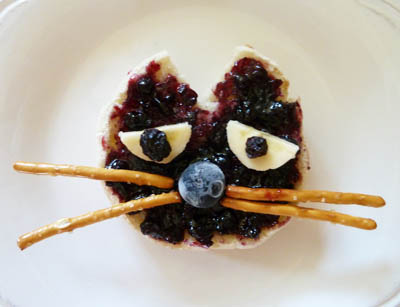 Add a raisin to each eye and a blueberry for the nose.