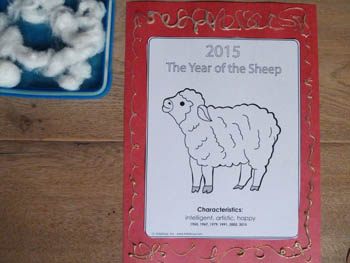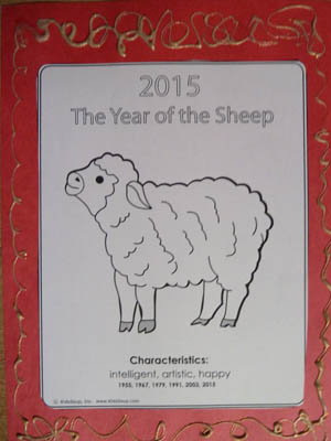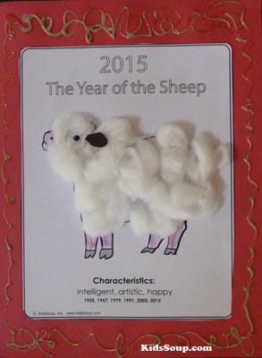 Print 2015 Year of the Sheep printable and cut out. Glue on top of the red craft paper. Decorate the red frame with a gold marker or glitter pen.