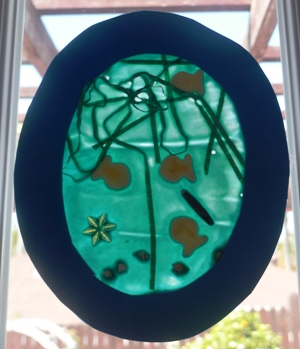 Have them press their blue craft foam Os over their ocean scenes to frame them. Once glue dries, cut out and trim the edges of each O. Display them on windows so that sunlight can illuminate the ocean scenes within.