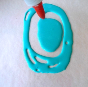 Print the Uppercase O Pattern and trace it onto blue craft foam, one per child. Cut out each letter O. Mix glue and food color and transfer into empty glue bottles or other squeeze bottle applicators. Prepare a square of wax paper per child.