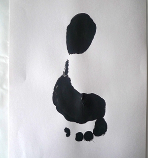 Over a period of a few days, have a classroom helper paint each child's foot, one at a time, with black paint and have the child make his/her footprint on white construction paper. Have the classroom helper assist child in washing his/her foot afterwards.