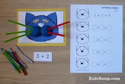 Pete the Cat Addition printables (KIdsSoup members only)