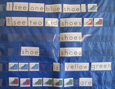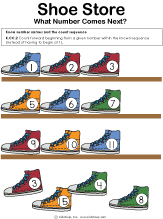 Encourage children to place two different color shoes on Pete. Let them tell you what color shoes and how many Pete is wearing. For example: Pete the Cat is wearing 2 red shoes and 2 yellow shoes. He has 4 shoes altogether.